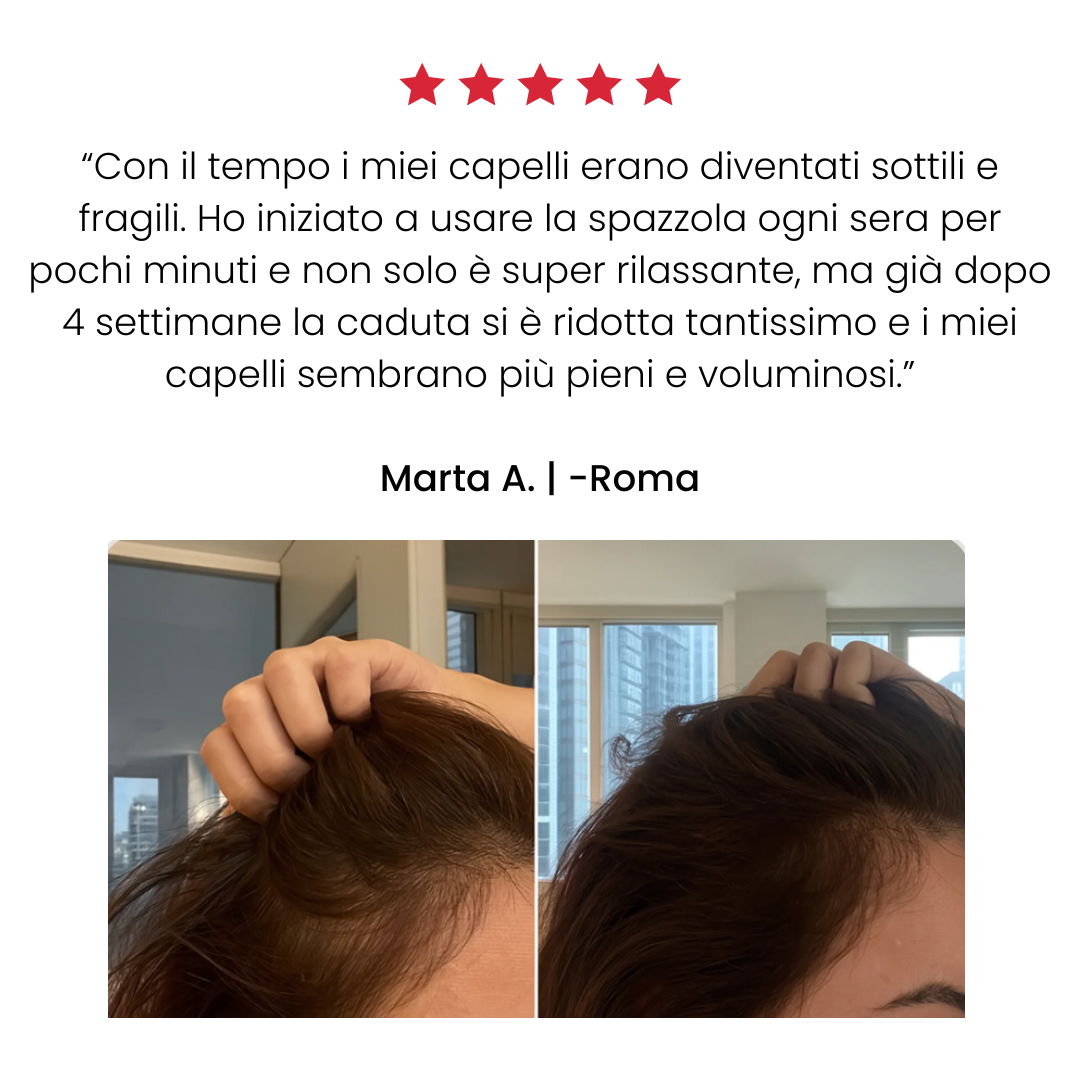 Non è un dispositivo medico, ma aiuta a stimolare i follicoli e migliorare la circolazione, creando le condizioni ideali per capelli più forti e sani.