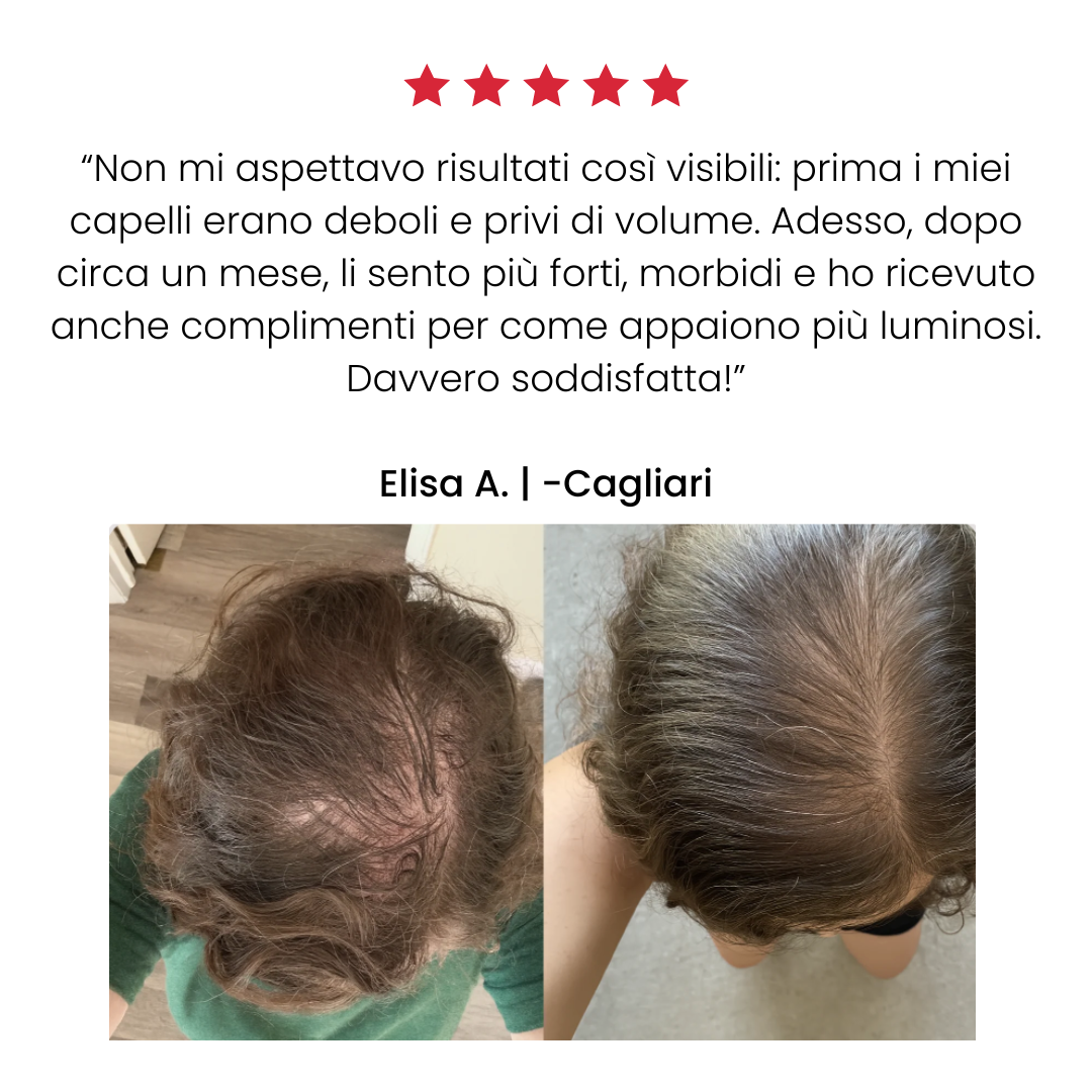 Ogni persona è diversa, ma molti clienti notano capelli più forti e voluminosi già dopo 2-4 settimane di utilizzo costante.